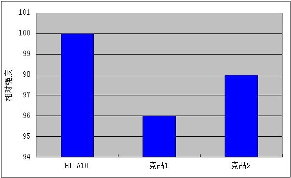 使用競(jìng)品1和2制備的酞菁藍(lán)色漿4 星期后出現(xiàn)沉淀,而HT A10制備的色漿4 星期后仍沒(méi)有沉淀。HT A10制備的色漿冷熱循環(huán)后的粒徑變化為5 nm,競(jìng)品1和2制備的色漿粒徑變化分別為11 nm和9 nm。色漿熱存放實(shí)驗(yàn)和冷熱循環(huán)實(shí)驗(yàn)證明HT A10對(duì)酞菁藍(lán)穩(wěn)定作用優(yōu)于競(jìng)品1和2。